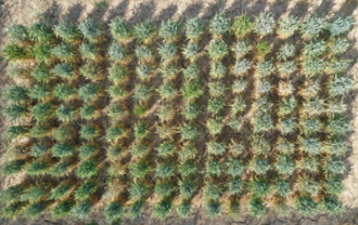 Top: image of UAV-based calibration system above a telescope array in Namibia. Bottom: UAV imagery of a wheat field with different pathogens |